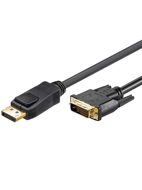 DisplayPort til DVI kabel, fra DisplayPort (han – 20 pins) til DVI-D (han – 24+1 pins), guld stik med lås, sort, 2 meter