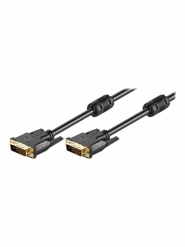 DVI-D Dual-Link (24+1 pins) kabel, DVI-D Dual-Link (24+1 pins) (han – han), understøtter op til: 144 Hz ved 1080p opløsning, rundt kabel, farve: sort, længde: 15 meter